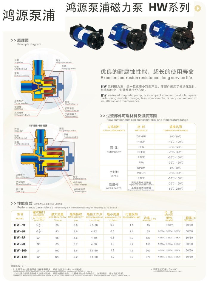 鸿源泵浦磁力泵HW系列